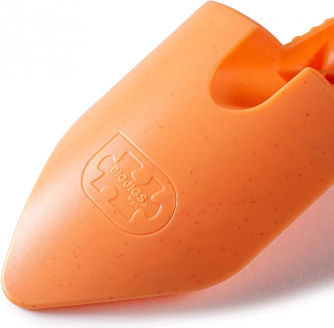 Pala ecológica naranja de Bigjigs Toys, fabricada con fibras de trigo sostenibles que recuerdan al plástico, pero son más respetuosas con el planeta. Se limpia fácilmente y, gracias a su tamaño compacto, es ideal para la playa o el jardín.