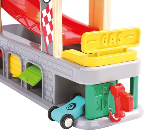 Esta colorida autopista en cascada ofrece una conducción dinámica, donde un corredor puede alcanzar de cerca al otro. Los niños disfrutan del descenso fluido por las rampas multinivel, el repostaje en boxes y el aparcamiento en garajes con puertas abatibles. Gracias a su diseño ingenioso, la pista favorece la motricidad fina, la coordinación ojo–mano y la imaginación.