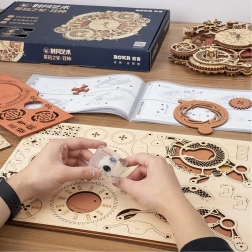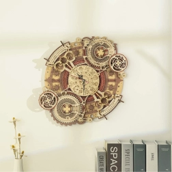 Descubre el arte de la relojería con nuestro rompecabezas mecánico 3D de madera. Este modelo destaca por su complejidad y acabado preciso, que atrae la atención de todos los aficionados al bricolaje y al diseño steampunk. Ideal para colgar en la pared, este modelo ofrece un uso estético y funcional gracias al reloj alimentado por electricidad y al calendario decorativo.
