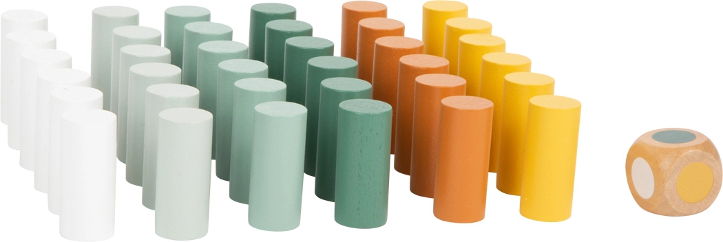 Los jugadores lanzan el dado de madera y, según el color obtenido, eligen la pieza. Las reglas se entienden al instante y la partida fluye con agilidad.