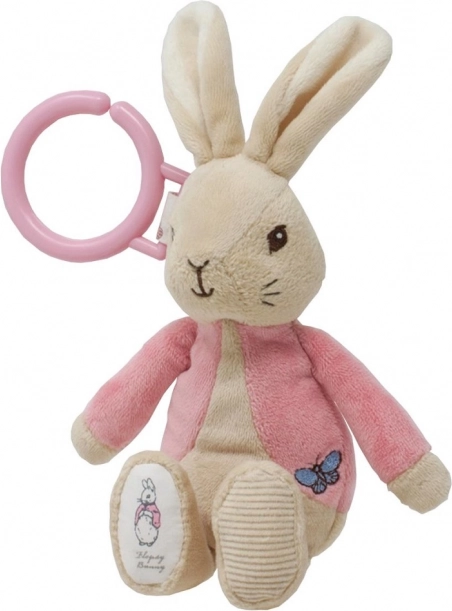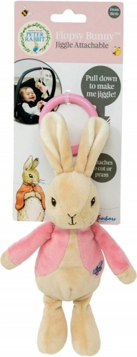 Este conejito de peluche Flopsy es el juguete ideal para bebés desde el nacimiento. Está diseñado pensando en la seguridad y la diversión de los niños. Flopsy se fija fácilmente con un aro de plástico rosa a cualquier cochecito, silla de coche o cuna, lo que lo convierte en un gran compañero de viaje.