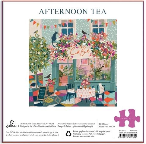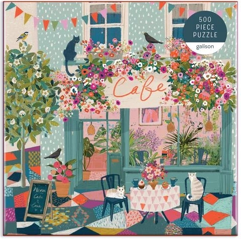 Descubre el encantador mundo de GALISON con el motivo “Té de la tarde en la cafetería”. La ilustración de la superventas Victoria Ball capta la acogedora atmósfera de una cafetería urbana adornada con plantas en flor, donde juegan adorables gatos y revolotean pájaros. El rompecabezas viene en una caja resistente con acabado mate, ideal también como regalo.