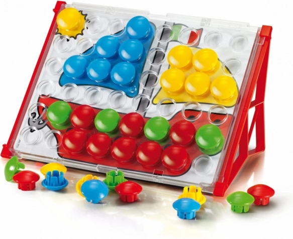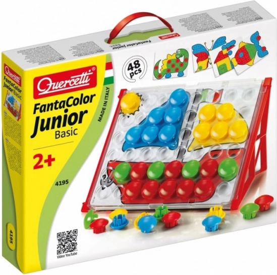 Fantacolor Junior Basic es un juguete didáctico ideal para preescolares. Los niños insertan grandes botones de colores en los orificios siguiendo las plantillas o su propia imaginación y, de forma divertida, entrenan la coordinación mano-ojo, la diferenciación de colores y el pensamiento lógico. Gracias a su robusta fabricación y a sus dimensiones seguras, el mosaico es adecuado desde los 2 años.