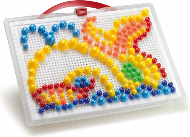 Crea asombrosos mosaicos y patrones con las coloridas clavijas colocadas sobre una resistente placa blanca.
