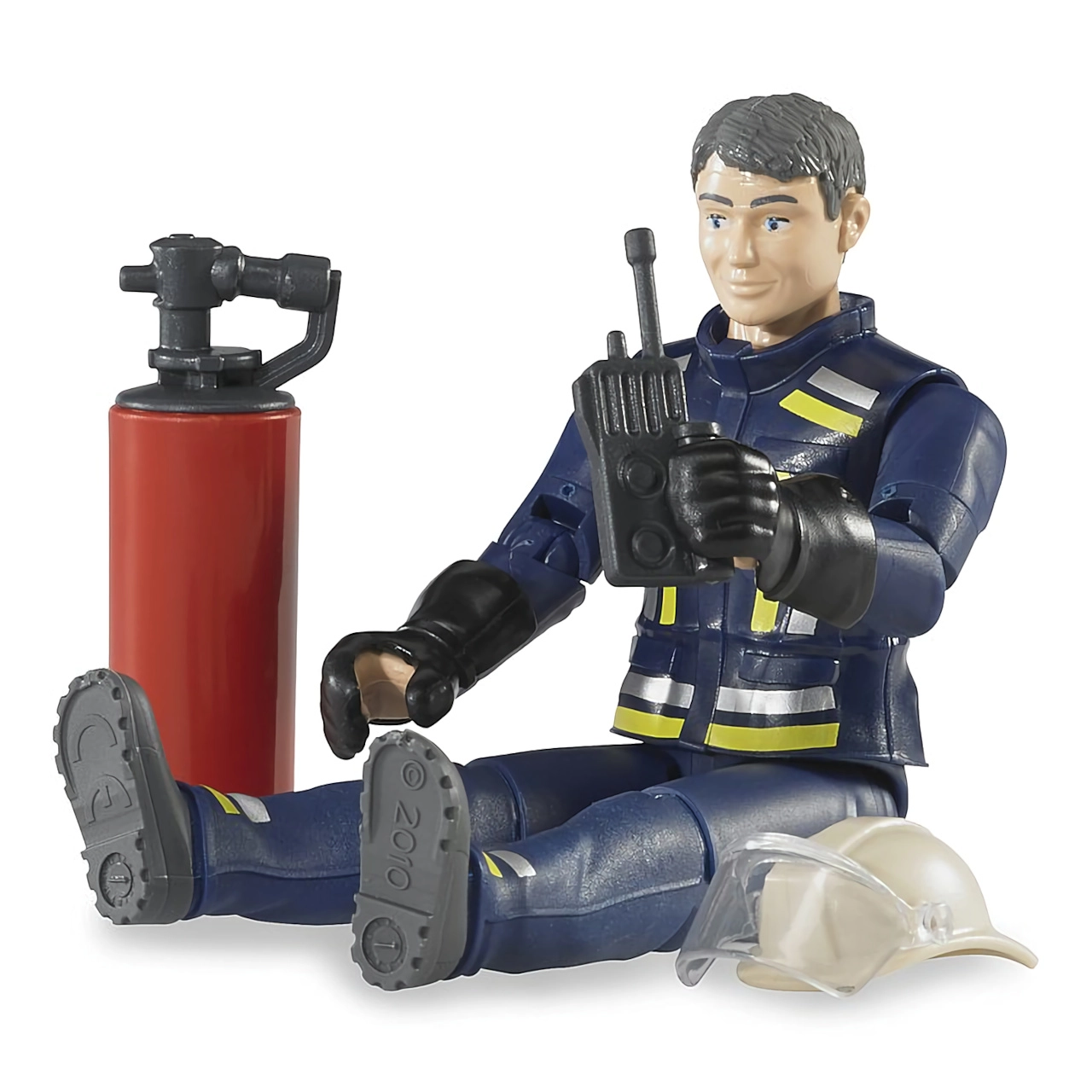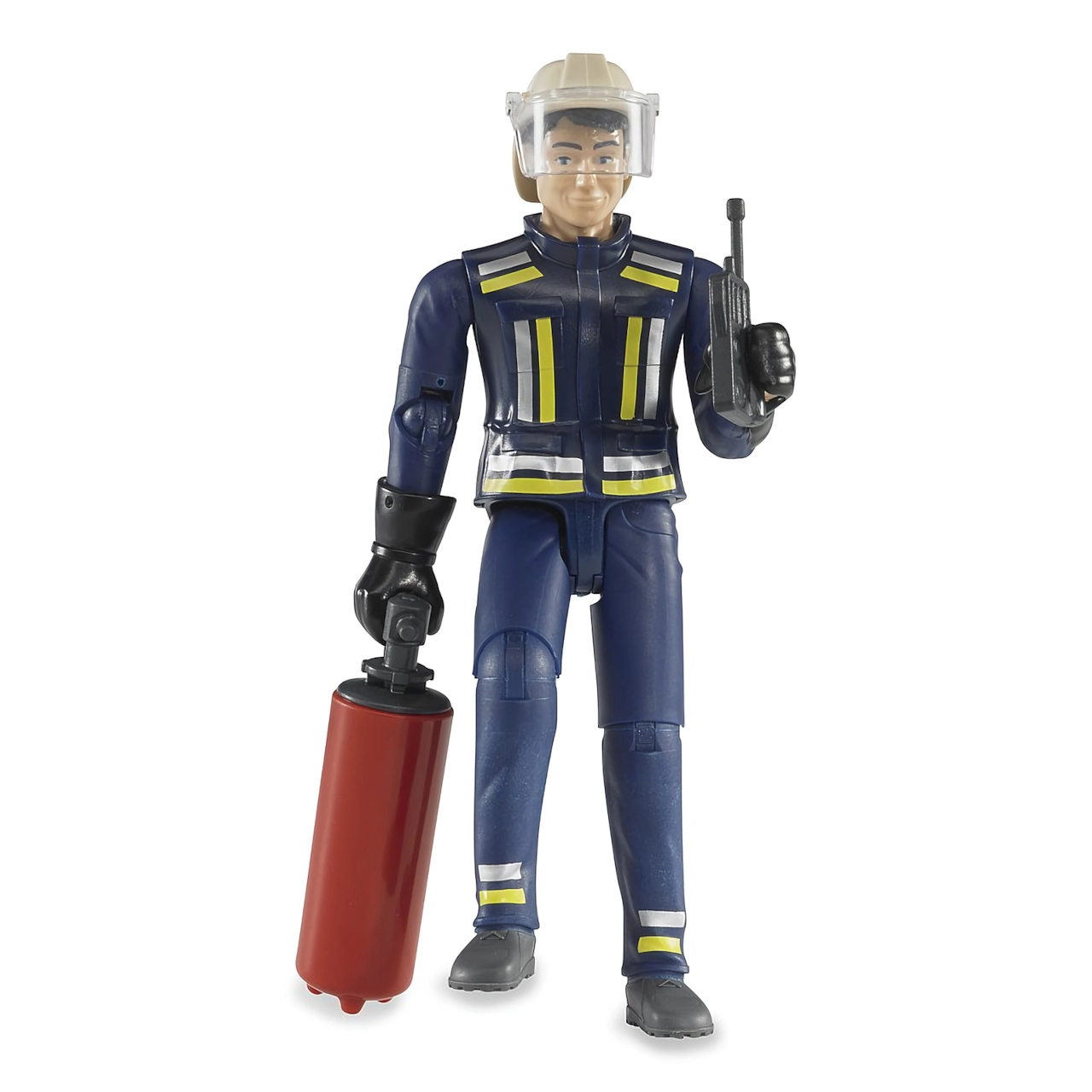 La figura realista de bombero BRUDER Bworld con articulaciones móviles y abundantes accesorios ofrece horas de juego creativo para los niños. Incluye casco con visera, walkie‑talkie, extintor y guantes. Fabricado en Alemania con plástico ABS y policarbonato de alta calidad.