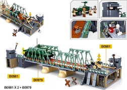 - Set de construcción con puente, búnker, vehículo, minifiguras y accesorios; instrucciones de montaje