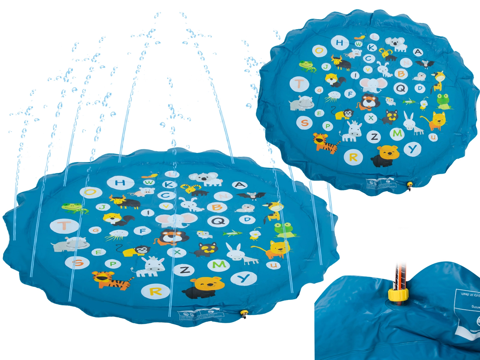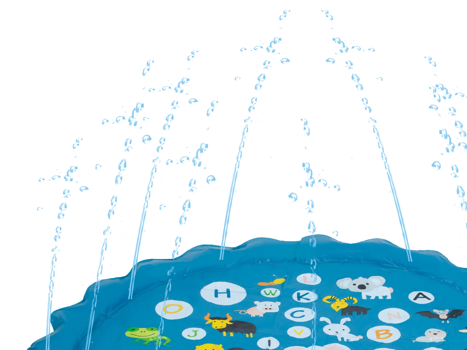¡Crea para los niños su propio parque acuático en el jardín! Esta alfombra circular con rociador de 170 cm de diámetro se conecta fácilmente a la manguera de jardín y se convierte en una divertida fuente. Ofrece refresco en los días calurosos, fomenta el juego activo al aire libre y, gracias a los coloridos animales con letras, también propone aprendizaje lúdico.