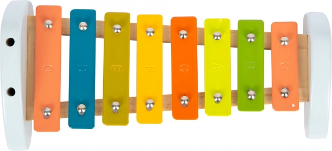 Cada lámina metálica tiene su propio color, de modo que los niños relacionan fácilmente los tonos con los colores y aprenden más rápido sus primeras melodías.