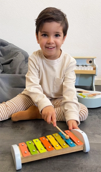 Descubre las primeras experiencias musicales con el xilófono infantil Groovy Beats de SMALL FOOT. Gracias a las láminas metálicas diferenciadas por colores y a las robustas baquetas de madera, los niños pueden tocar fácilmente sus primeras melodías incluso sin leer partituras. El xilófono desarrolla la motricidad fina, el ritmo y fomenta la creatividad de cada pequeño músico.