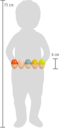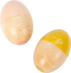 Los huevos combinan madera maciza natural con colores modernos y un acabado de superficie resistente. Son excelentes para el juego individual y en grupo, favorecen la ritmización, la coordinación mano-ojo y la motricidad fina. Gracias a su versatilidad, son adecuados para el hogar, guarderías y talleres de música.
