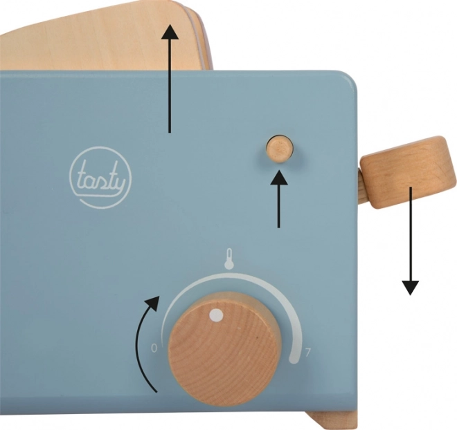 Este realista set de madera Small foot Tasty convierte cualquier cocinita infantil en el lugar favorito para los rituales del desayuno. Los niños introducen las rebanadas de pan, presionan la palanca y, gracias a la función de expulsión, el pan tostado “salta” listo. El botón giratorio con clic imita fielmente el ajuste del nivel de tostado, lo que aumenta la autenticidad del juego.