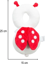 Suave mochila protectora con forma de mariquita que protege la cabeza del bebé durante sus primeros intentos de ponerse de pie, gatear y caminar. Correas elásticas ajustables mantienen el cojín firme en la espalda, mientras que el cuello circular alrededor de la cabeza amortigua las caídas sobre la nuca. Ligera, suave y agradable al tacto para el uso diario.