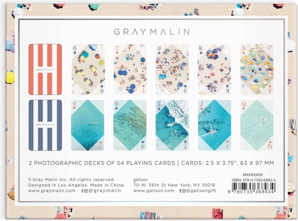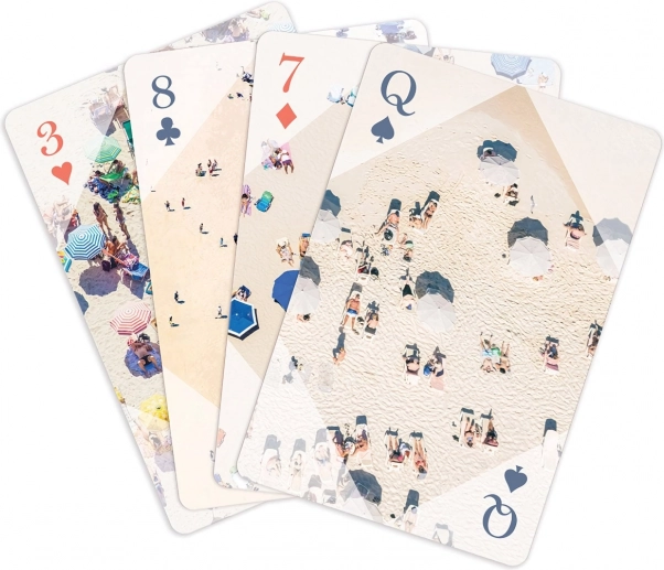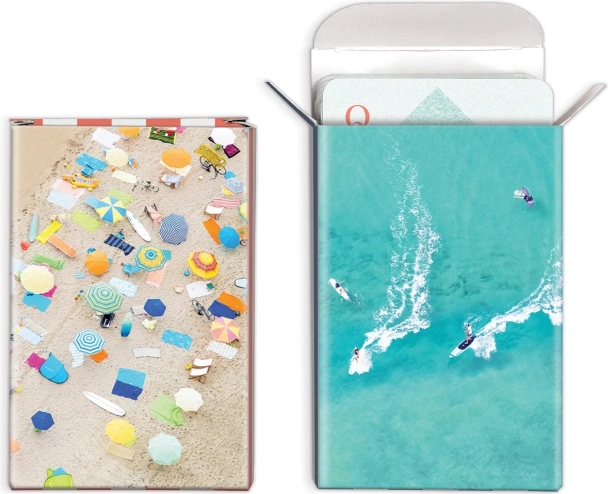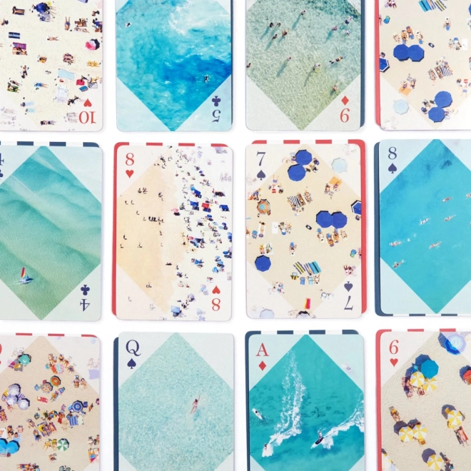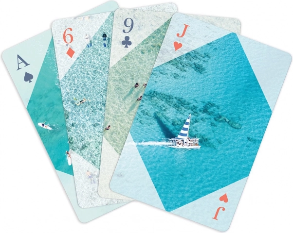 Disfruta de una experiencia única con este set con estilo, que combina elementos tradicionales del juego con encantadoras tomas aéreas de playas. El set incluye dos barajas de 54 cartas, sumando un total de 108 cartas.