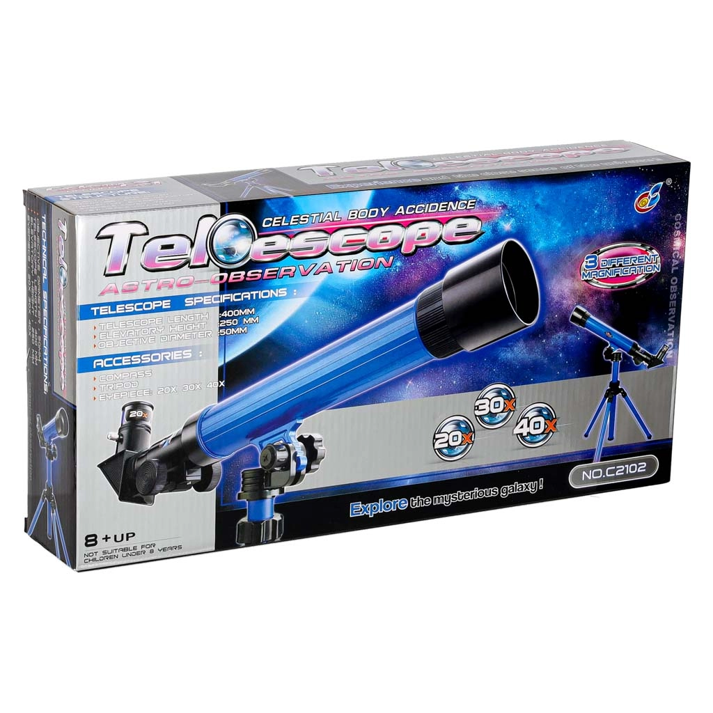 Descubre la magia del cielo nocturno con este telescopio educativo para niños con trípode giratorio 360° y oculares intercambiables de 20x, 30x y 40x. Gracias a la altura ajustable del trípode y su construcción ligera, es ideal para astrónomos principiantes a partir de 8 años.