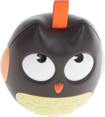 Los detalles de alto contraste, los grandes ojos móviles y el suave traqueteo de los cascabeles internos atraen la atención de forma natural. Las diferentes texturas de la superficie y el práctico asa superior fomentan la motricidad fina y la percepción táctil.