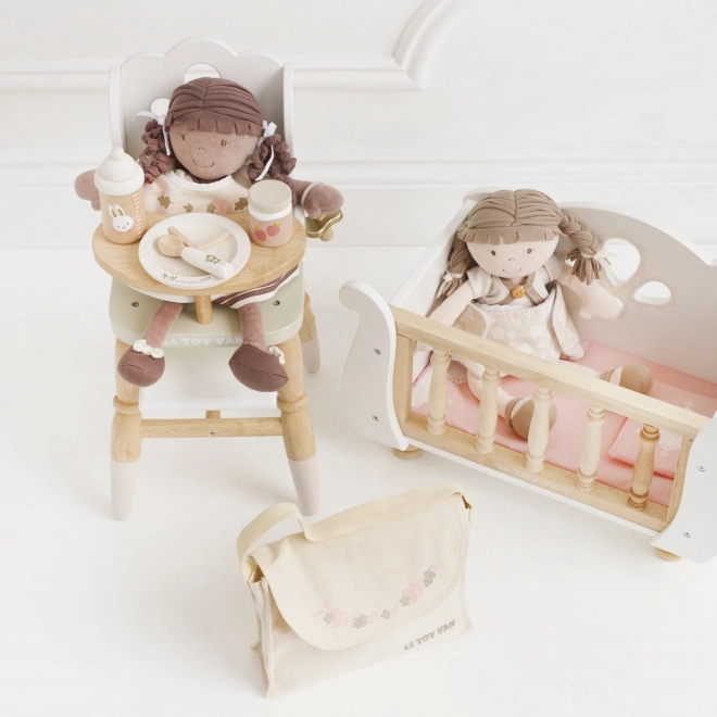 Cuidar muñecas y peluches nunca ha sido tan divertido e inspirador. El set de cuidado de Le Toy Van ofrece un equipamiento completo para pequeños cuidadores. Incluye un bolso cambiador de tela con diseño decorativo, chupete, babero, pañal, plato, cuchara, potito y biberón. Cada pieza está fabricada con atención a la sostenibilidad y la calidad para soportar muchas horas de juego.