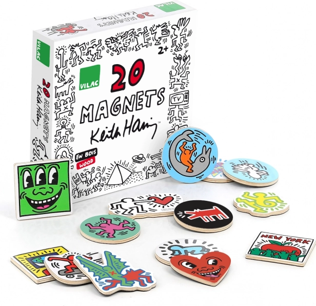 Aporta a tu hogar la energía lúdica del pop art. El set de 20 imanes de madera VILAC con motivos de KEITH HARING ofrece un diseño inconfundible, colores vivos y diversión creativa. Gracias a su construcción de madera sólida y al acabado brillante, los imanes son ideales para el uso diario en la nevera, pizarra magnética o estanterías.