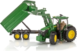 El tractor se complementa con un remolque tándem que cuenta con función de volcado y laterales desmontables, lo que permite un traslado y carga sencillos de diversos objetos. A los niños les encantarán el nivel de detalle y las posibilidades que ofrece este modelo.