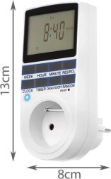 El temporizador digital es útil en cualquier hogar, oficina o tienda. Permite controlar el tiempo de funcionamiento de los aparatos y está equipado con 8 botones y reinicio para una programación sencilla. Gracias a su pantalla legible, podrás ajustar fácilmente la hora actual y el programa.