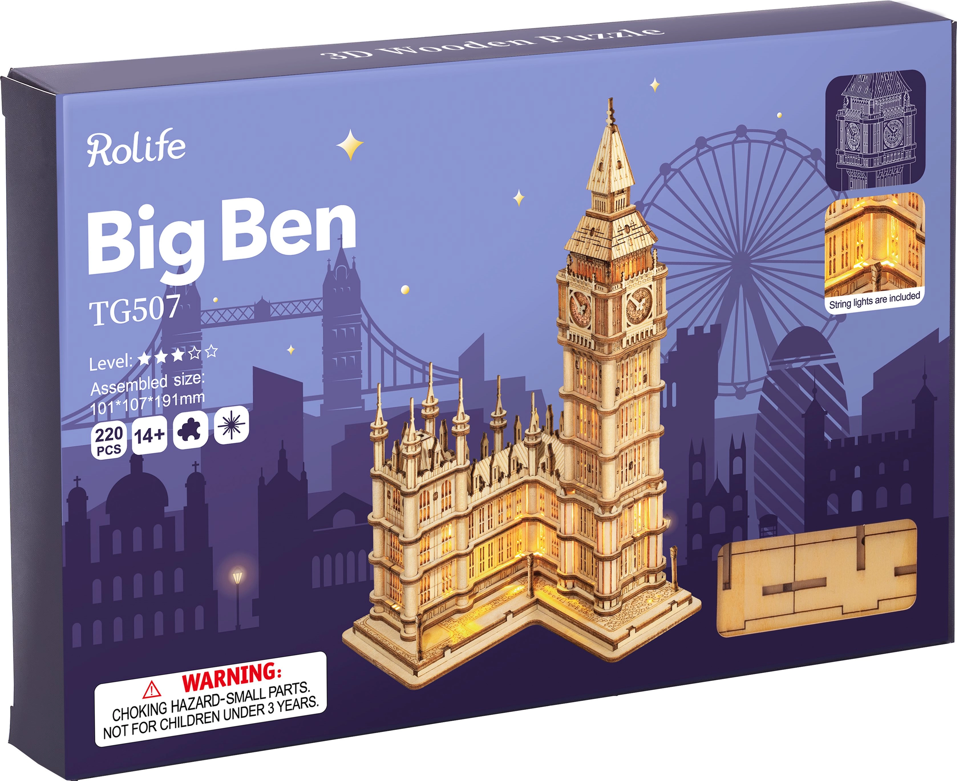 Descubre el encanto de la arquitectura histórica con el rompecabezas 3D de madera Big Ben. Gracias a sus detalles finos, uniones precisas y el conjunto LED integrado, surge una miniatura impactante de la famosa torre londinense que, al encenderse, evoca la atmósfera de la ciudad por la noche. El kit es una gran elección para aficionados hábiles a partir de 14 años y también como decoración representativa para el despacho, el salón o una vitrina.