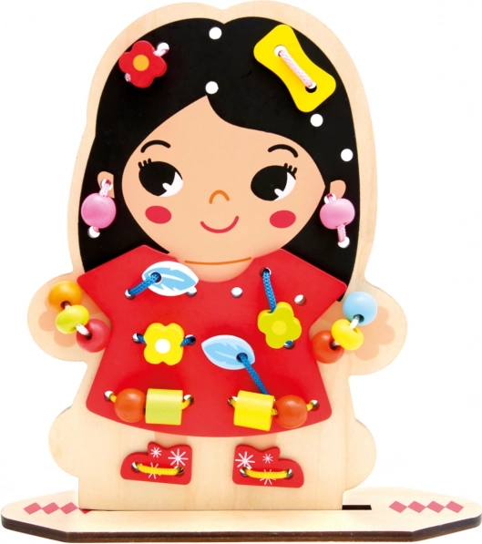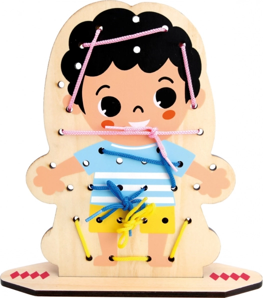 - Juego de ensartar y pasar cordones de madera