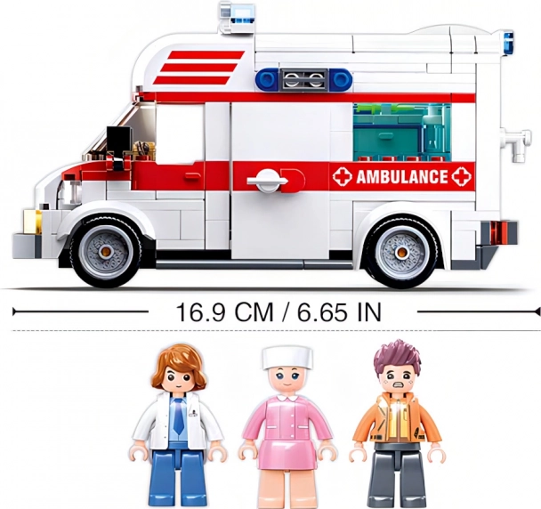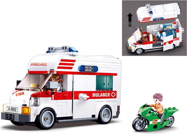 Crea tu propio equipo de emergencias con el set de construcción Sluban Town ambulancia. El conjunto ofrece 328 piezas, 3 minifiguras con partes móviles y una dificultad sencilla para niños a partir de 6 años. La ambulancia de 16,9 cm de largo, la camilla y los accesorios fomentan el juego creativo y los escenarios de primeros auxilios. Las piezas son de plástico ABS resistente y seguro y son compatibles con LEGO, COBI y Mega Bloks.