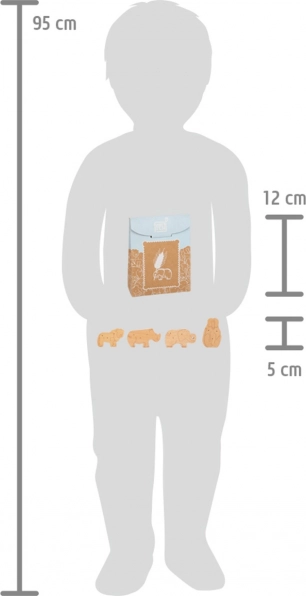 Esta colección de ocho galletas de madera robustas reproduce a la perfección las formas y detalles de animales de la sabana. En cada paquete encontrarás 2 leones, 2 monos, 2 rinocerontes y 2 elefantes, cuyo aspecto natural sin duda atraerá a los pequeños aventureros. Las galletas se presentan en una caja de cartón resistente, fácil de abrir y cerrar, que enriquecerá cualquier tienda o cocinita infantil.