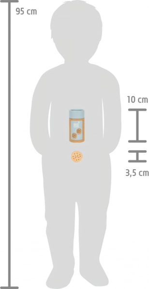 Las galletas están elegantemente presentadas en un envase cilíndrico con tapa extraíble, lo que facilita su almacenamiento y transporte. Son compatibles con otros productos de la línea “Fresh”, por lo que pueden formar parte de una colección de juego más amplia. Los juguetes de esta línea ofrecen a los niños diversión duradera y suelen usarse para jugar a hornear o a vender.