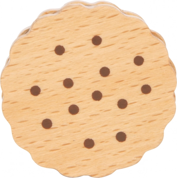 Estas cinco robustas galletas de madera son el complemento ideal para los juegos infantiles. No solo fomentan la creatividad y el juego imaginativo, sino que también ayudan a desarrollar las habilidades motoras gracias a su textura natural y realista. Cada galleta tiene un relleno de chocolate y es capaz de captar la atención de los niños por sus detalles.