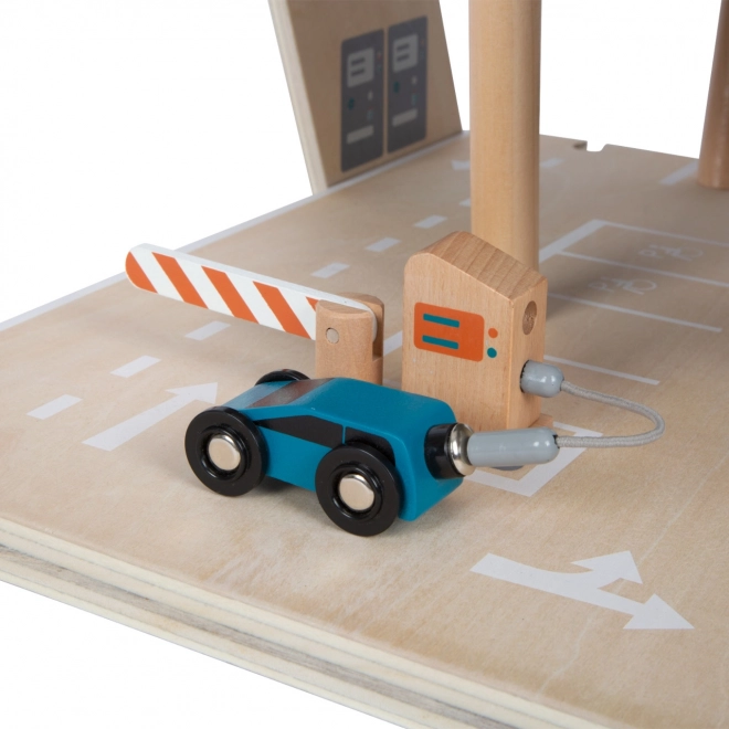 Descubre un versátil aparcamiento de madera de tres niveles con ascensor funcional y rampas suaves para horas de juego creativo. Incluye 2 cochecitos, estación de servicio y de carga, rampa elevadora y lavadero con cepillos realistas. Las barreras mecánicas en cada nivel y el vallado de goma para una conducción segura aportan dinamismo al juego. La combinación resistente de contrachapado de madera, madera maciza y plástico seguro garantiza una larga durabilidad.