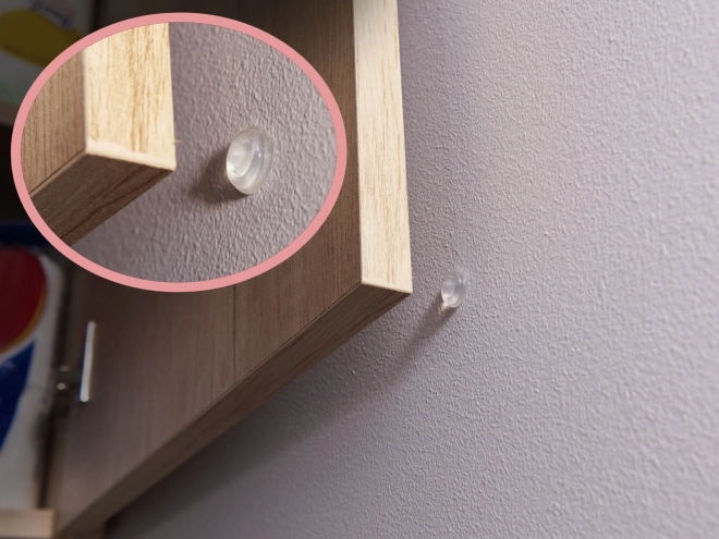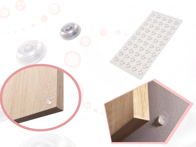 Los topes de silicona transparentes se integran con la superficie y protegen paredes y muebles sin alterar el diseño.