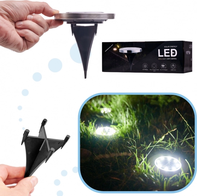 Elegantes lámparas solares planas para exterior que proporcionan iluminación automática de aceras, entradas y parterres sin cables ni costes de electricidad. Cada luz dispone de 8 LED brillantes, sensor crepuscular y protección IP65 para funcionamiento durante todo el año. Se clavan fácilmente en el suelo y, tras una carga completa, iluminan hasta 8 horas en blanco frío. Ideales como iluminación decorativa y funcional del jardín.
