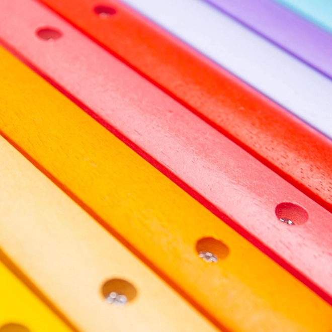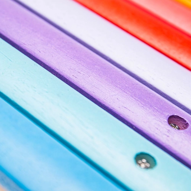 Los tornillos de seguridad aseguran la fijación firme de las láminas, protegiendo a los niños durante el juego. Este xilófono es ideal para desarrollar la coordinación y la percepción de los colores.