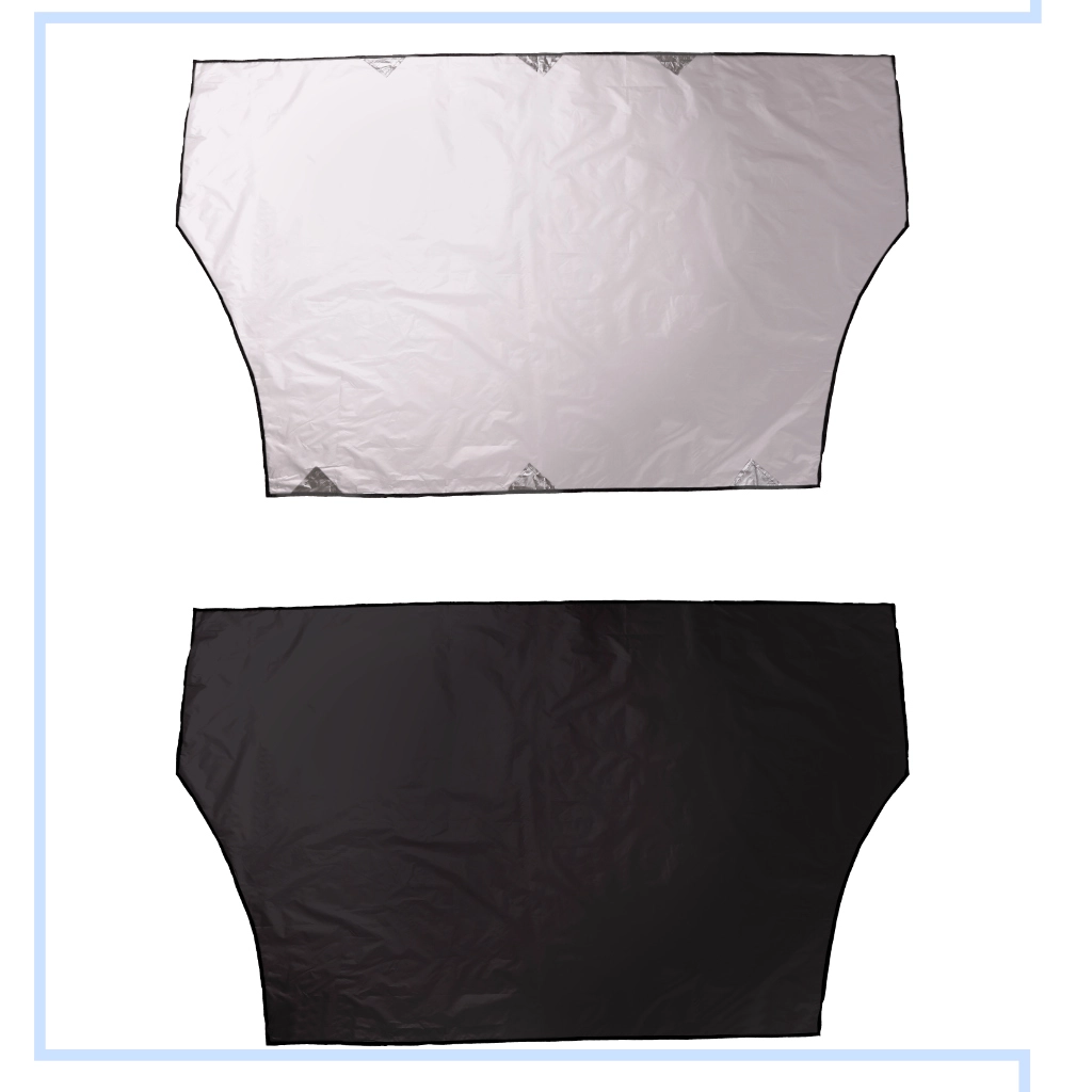 Esta práctica cortina magnética es la protección ideal para el parabrisas o la luneta de su vehículo. En verano reduce eficazmente el sobrecalentamiento del interior e impide la entrada de radiación UV; en invierno protege el vidrio de la escarcha y la nieve. Está fabricada en poliéster resistente y opaco con una capa termoaislante plateada en un lado.
