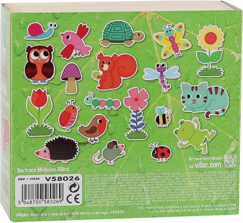 Descubre las posibilidades creativas con los imanes de madera Vilac con motivo de jardín. Estas piezas robustas y de fabricación ecológica ofrecen posibilidades ilimitadas para el juego y la decoración. Disfruta de las preciosas ilustraciones coloridas que pueden adornar la nevera o la habitación infantil.