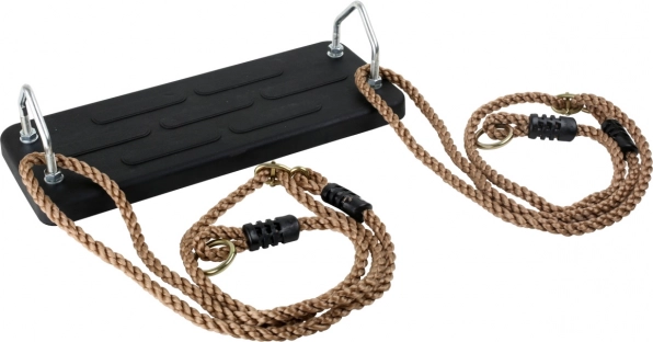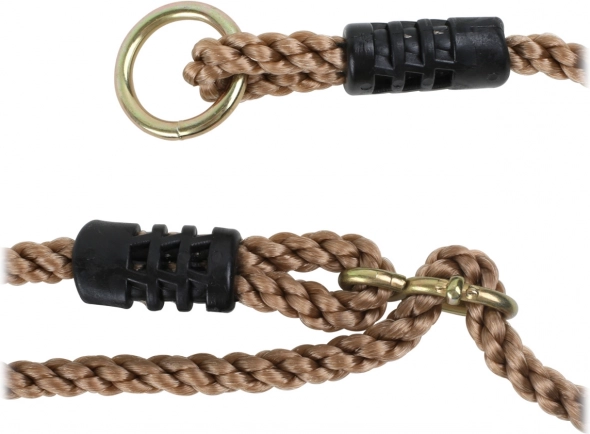 Las cuerdas fuertes y flexibles de material resistente terminan en anillas metálicas para facilitar la suspensión. Con los ojales metálicos puedes ajustar rápidamente la longitud hasta 180 cm, para adaptar el columpio a diferentes alturas de anclaje. La capacidad de carga de 100 kg garantiza un uso duradero y seguro.
