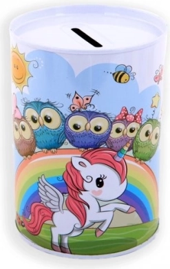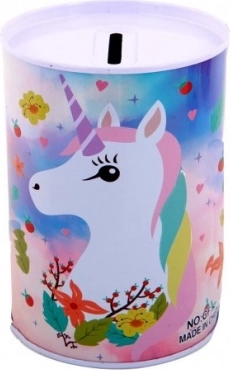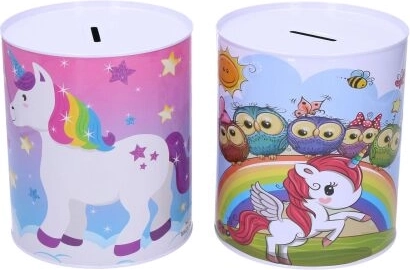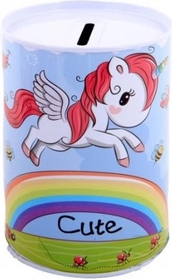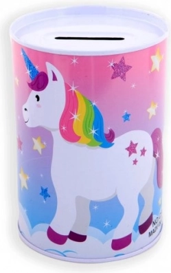 La hucha metálica con motivo de unicornio no solo es una herramienta práctica para ahorrar, sino también un precioso elemento decorativo para la habitación infantil. Sus coloridas ilustraciones de unicornios, arcoíris y estrellas encantarán a cualquier niño.