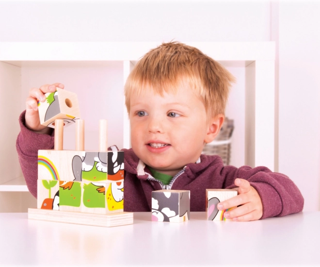 Los cubos encajables de madera Bigjigs Baby son una opción ideal para los primeros rompecabezas y construcciones. Los niños practican el agarre, la destreza de los dedos y la percepción visual al buscar las caras correctas de los cubos y encajarlas en los pernos. Las ilustraciones coloridas de animalitos motivan a jugar repetidamente y favorecen la concentración.