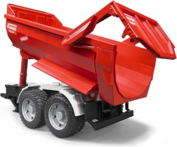 La fiel réplica de plástico del remolque agrícola KRAMPE ofrece a los niños un juego de granja auténtico. Gracias a la caja basculante funcional con apertura automática de la pared trasera, cargar y descargar es fácil y divertido. El modelo está realizado con gran precisión hasta en los detalles más pequeños y se conecta sin problemas a los tractores BRUDER.