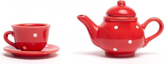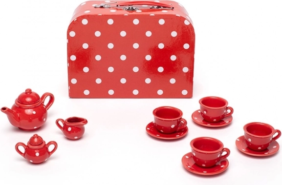 Organiza la merienda de té infantil perfecta con este encantador set en color rojo con lunares blancos. El conjunto incluye todo lo que los pequeños anfitriones necesitan: tetera, 4 tazas con platillos, azucarero y jarrita para leche. Tras jugar, todo se guarda fácilmente en el resistente maletín, por lo que el set es ideal también para llevar de viaje. Fabricado con materiales de calidad y conforme a las normas europeas de seguridad.