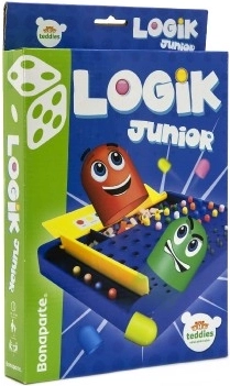 Logik junior es un juego de mesa divertido que desarrolla las habilidades de combinación y el razonamiento deductivo. Un jugador establece un código secreto con cinco clavijas de colores y el oponente intenta descubrirlo en un máximo de diez intentos. Después de cada ronda recibe una pista sobre cuántas clavijas tienen el color y la posición correctos.