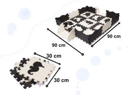 Esta alfombra de espuma desarrolla la imaginación del niño y fomenta el pensamiento lógico y no convencional. Además, mejora las habilidades manuales y estimula los sentidos de la vista y el tacto. El puzle no solo hace más ameno el juego diario, sino que también sirve como protección contra el frío y minimiza el riesgo de lesiones por caídas.
