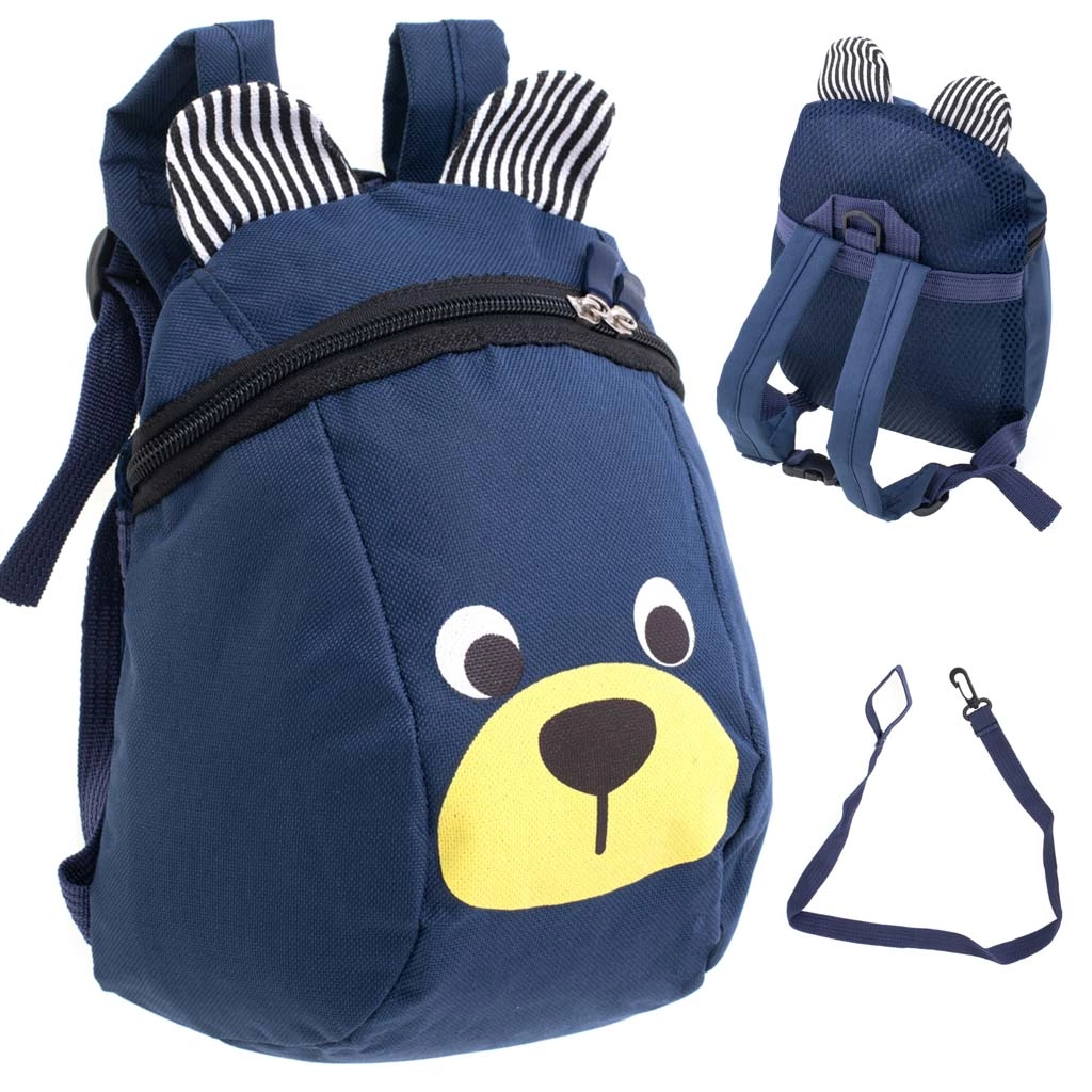 La práctica correa de seguridad ayuda a los padres a mantener el ritmo y la dirección de la marcha del niño en entornos más concurridos. La fabricación de calidad en poliéster resistente y el diseño divertido con orejitas de oso hacen de esta mochila una gran compañera para el día a día.