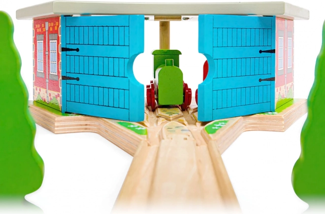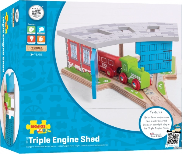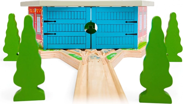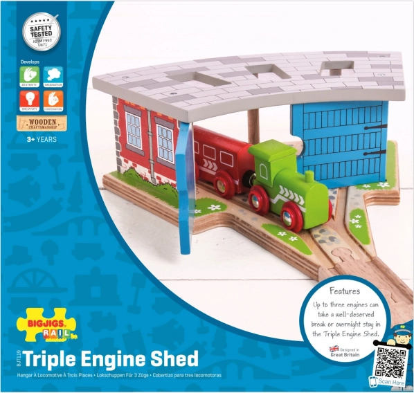 Una ampliación práctica y divertida para tu circuito de trenes: el depósito triple con puertas de Bigjigs Rail ofrece un “aparcamiento” seguro para locomotoras y vagones y, gracias a las vías con desvíos inteligentes, permite salir en tres direcciones. Fabricado en madera de alta calidad, compatible con la mayoría de circuitos de trenes de madera del mercado y cumple con las normas europeas de seguridad.