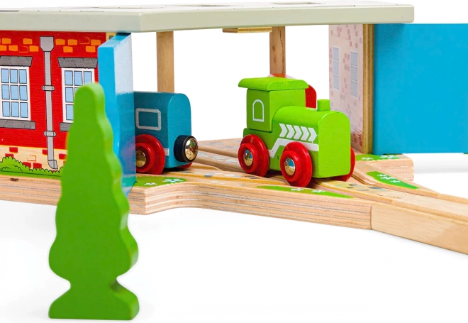 El depósito es totalmente compatible con la mayoría de sistemas de trenes de madera habituales, por lo que podrás integrarlo sin esfuerzo en tu mundo ferroviario existente. Jugar con el depósito desarrolla la imaginación, la motricidad fina y la coordinación.