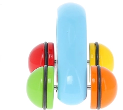 Las ruedecillas de colores con aro de goma amortiguan el ruido, protegen el suelo y garantizan un movimiento fluido del cochecito: ideal para pisos y habitaciones infantiles.