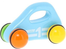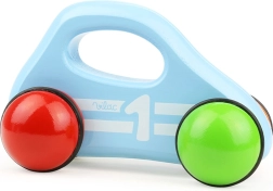 La madera lacada, el acabado preciso y el motivo de carreras con el número 1 convierten a este cochecito en un gran juguete y un accesorio con buen gusto para el interior.