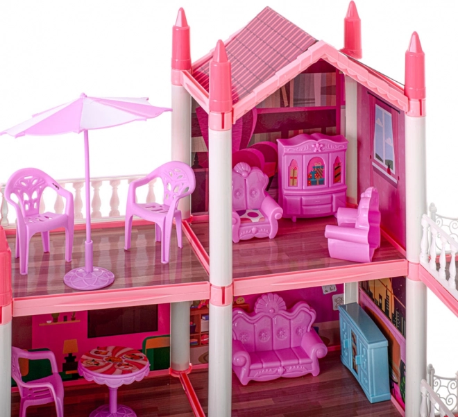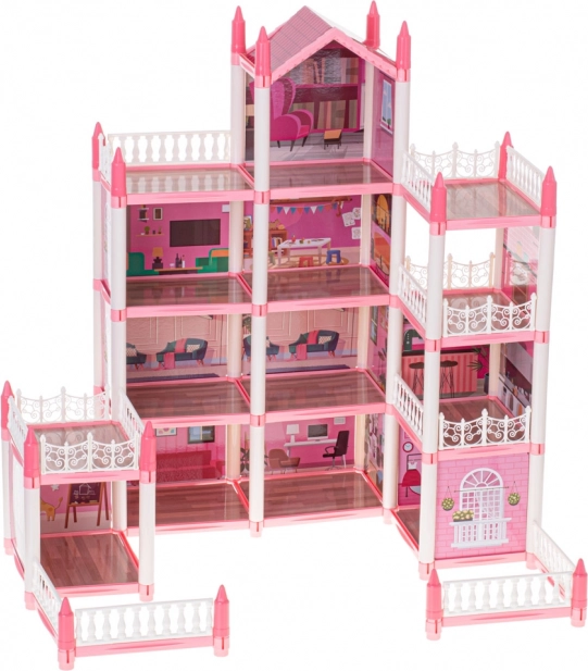 La villa rosa para muñecas tiene cuatro pisos que ofrecen habitaciones fascinantes y variadas por descubrir.