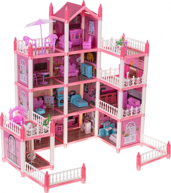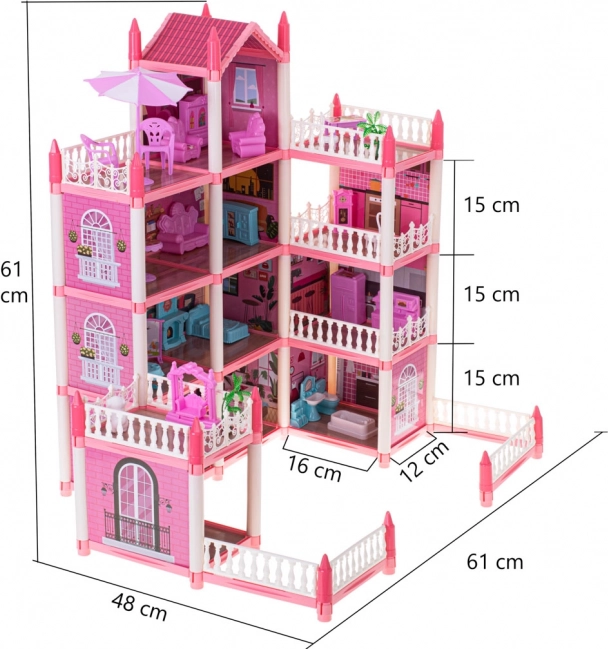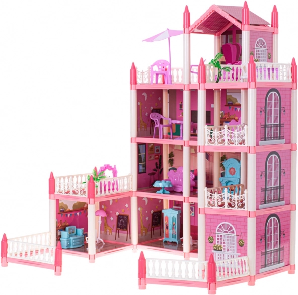 ¡Diversión increíble para tus hijos! La villa rosa ofrece infinitas posibilidades para el juego creativo. Los niños pueden organizar los cuatro pisos a su gusto y crear su propio hogar acogedor para las muñecas. El paquete incluye un set de muebles y elementos decorativos que completan el aspecto realista.