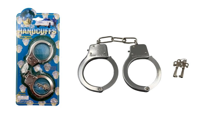 Divertidas esposas infantiles Plejo con aspecto metálico realista para juegos de policías y ladrones. Incluyen una llave funcional y hacen hincapié en el uso seguro, fácil manejo y fomento de la imaginación infantil.